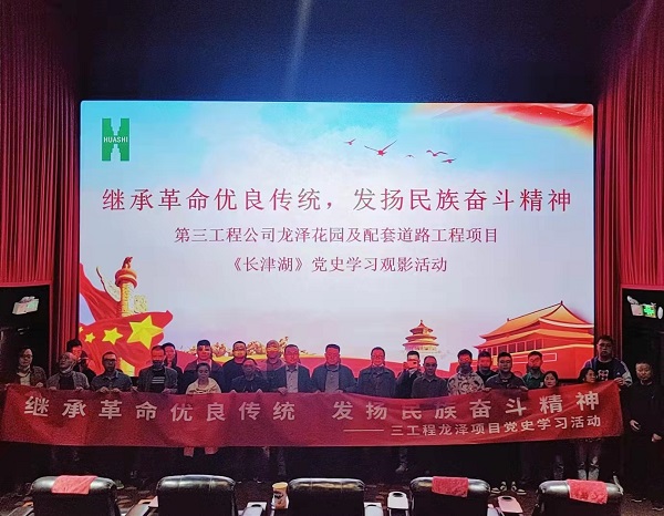 為(wèi)慶祝中國共産黨成立100周年,紀念中國人(rén)民志(zhì)願軍抗美援朝71周年,大(dà)力弘揚愛(ài)國主義精神,進一步推進黨史學習教育。2021年10月9日-10月13日,第三工程公司國家(jiā)環境保護機動車(chē)污染控制(zhì)與模拟重點實驗室(成都基地)項目、龍澤花(huā)園及配套道(dào)路工程項目分别開(kāi)展了開(kāi)展“觀紅色電(diàn)影(yǐng),學百年黨史”觀影(yǐng)活動,觀看電(diàn)影(yǐng)《長津湖(hú)》,共計(jì)50餘人(rén)參加。