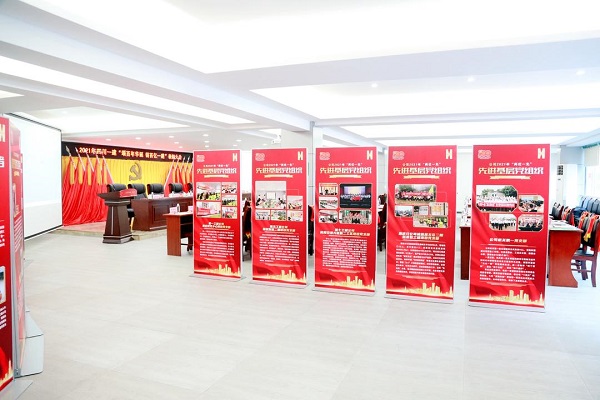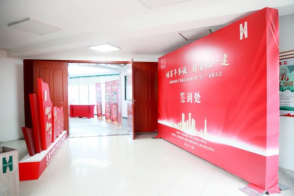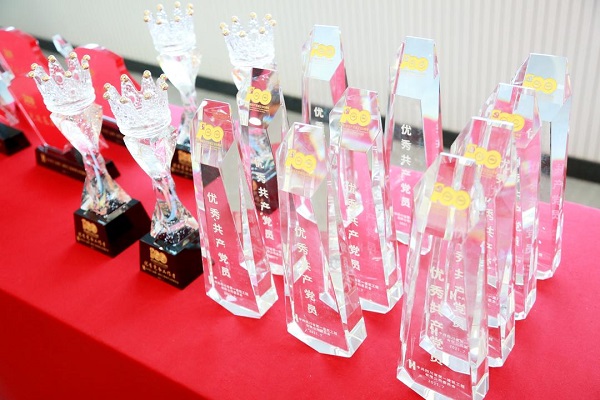公司大(dà)院內(nèi),鮮紅的道(dào)旗整齊排列,蘊含對黨百年祝福标語懸挂在公司大(dà)樓外側。會(huì)場(chǎng)內(nèi),帷幕正中是熠熠生(shēng)輝的中國共産黨黨徽,一排排“兩優一先”形象展示整齊排列,為(wèi)獲獎者特制(zhì)的獎杯在陽光下格外閃耀,全場(chǎng)氣氛莊重而熱烈。