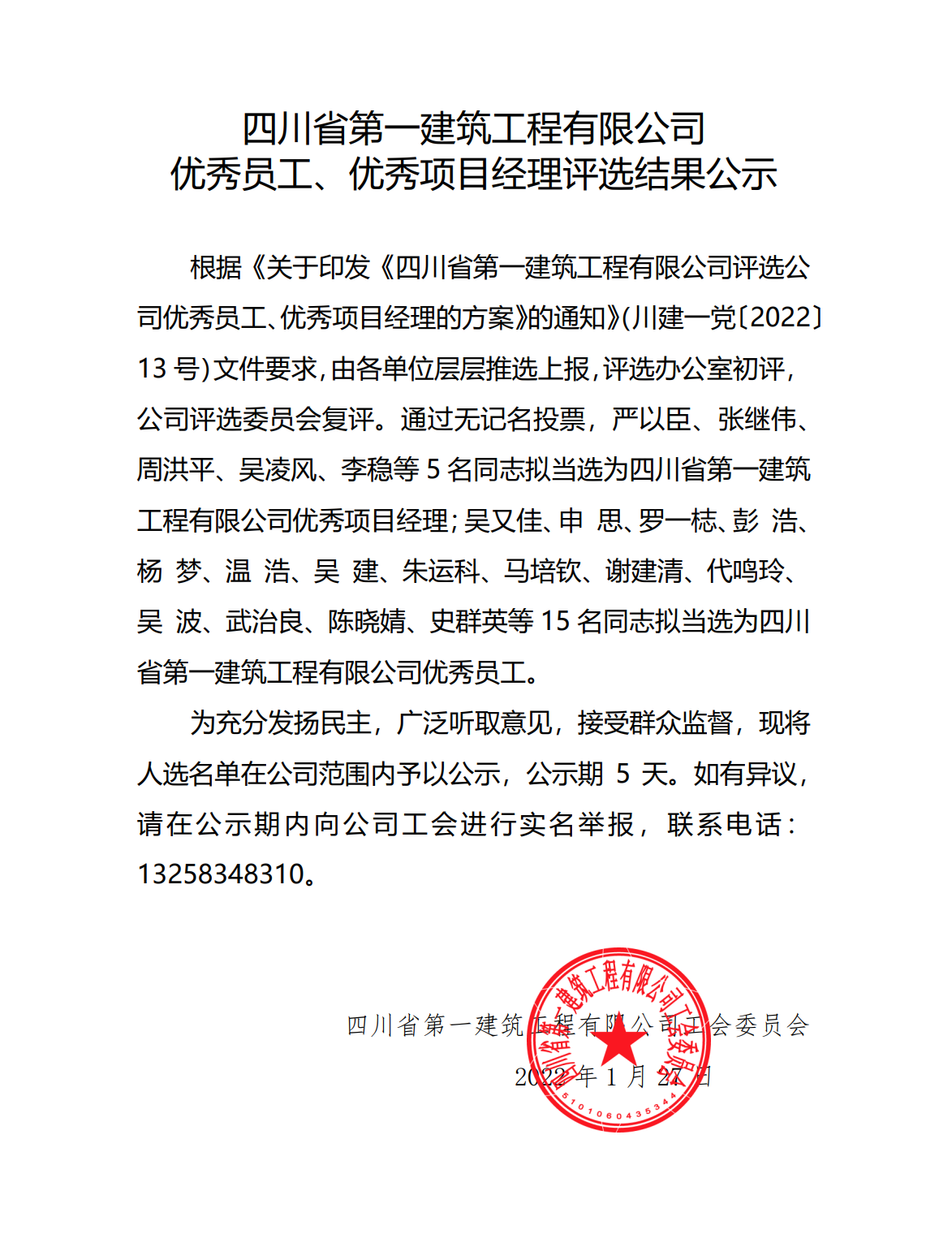四川西南聯建建設工程有限公司 優秀員工、優秀項目經理(lǐ)評選結果公示