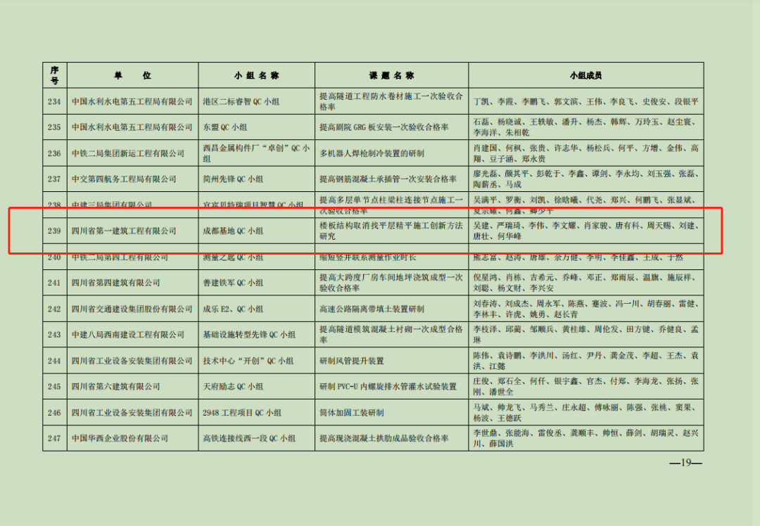 近日,第三工程公司國家(jiā)環境保護機動車(chē)污染控制(zhì)與模拟重點實驗室(成都基地)項目傳來(lái)喜訊,“樓闆結構取消找平層精平施工創新方法研究”QC成果榮獲2022年四川省工程建設質量管理(lǐ)小(xiǎo)組活動成果一等獎。