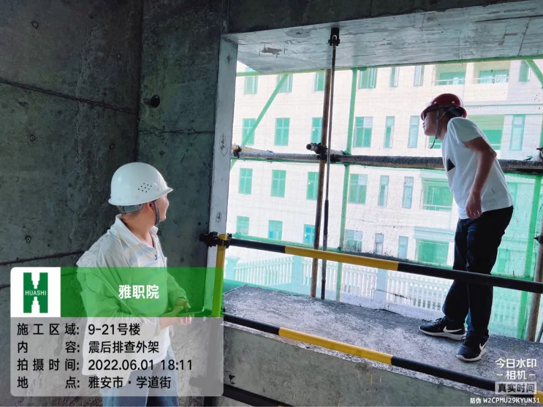 市政公用工程公司華體(tǐ)雅安國際運動健康中心項目所在地雅安名山(shān)區(qū)有(yǒu)明(míng)顯震感。項目部高(gāo)度注視(shì),第一時(shí)間(jiān)組織災後安全隐患排查工作(zuò)。重點對起重設備、臨時(shí)用電(diàn)、深基坑工程、腳手架模闆工程、已完成的二次結構、臨時(shí)設施等可(kě)能因地震受損涉險的進行(xíng)全面排查。當天下午18:00,項目已全部完成震後排查,未收到人(rén)員涉險信息,工程項目震後安全受控。
