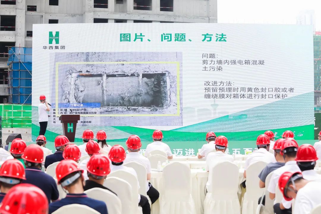 彙報組在接到質量安全問題後将問題制(zhì)作(zuò)成成果PPT,并提出諸如采用定型化工具式材料、鋪設層闆進行(xíng)成品保護、增加墊塊、采用工具式防護網片等可(kě)行(xíng)性強、易操作(zuò)性高(gāo)的改進措施。各參賽隊員細緻耐心的檢查與豐富簡便的改進措施,充分展現了華西人(rén)精益求精的精神風貌。