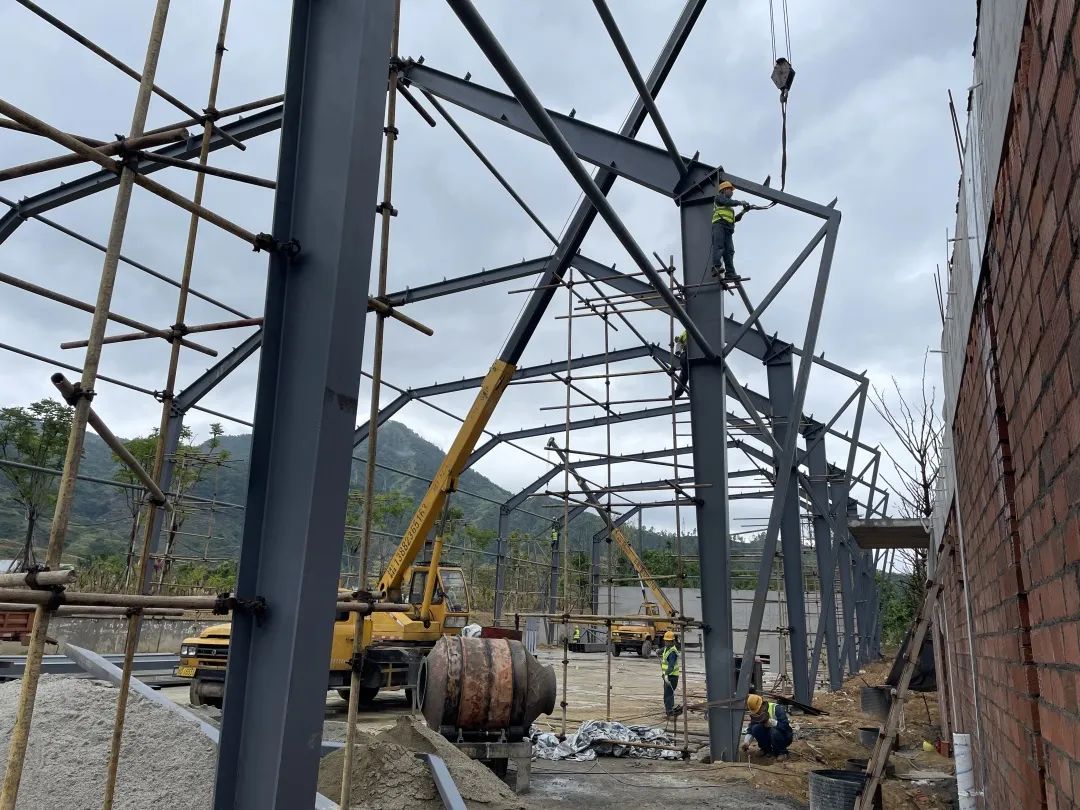 普達陽光國際康養度假區(qū)土地前期開(kāi)發項目——公共綠化三期(雲谷公園)網球場(chǎng)館工程,本場(chǎng)館作(zuò)為(wèi)攀枝花(huā)地區(qū)面積最大(dà),檔次最高(gāo)的網球場(chǎng)館,受到區(qū)政府及相關部門(mén)的重視(shì)。該工程于2022年7月底開(kāi)工,目前,1号場(chǎng)館已完成主體(tǐ)結構梁柱及系杆安裝,整體(tǐ)完成率50%,2号場(chǎng)館已完成土建工作(zuò)。項目部為(wèi)統籌工期節點與質量安全,多(duō)次組織召開(kāi)專題會(huì)議,動員相關人(rén)員和(hé)材料分供商,細化施工工藝,完善施工組織,結合業主單位及政府部門(mén)的工期要求,最終将1号館的完成節點定于9月30日,2号場(chǎng)館的完成時(shí)間(jiān)定于11月20日。項目部全體(tǐ)職工争分奪秒(miǎo),細化、優化施工流程,強化現場(chǎng)管控,各項任務均能在計(jì)劃期內(nèi)完成,确保最終目标的按期完成。