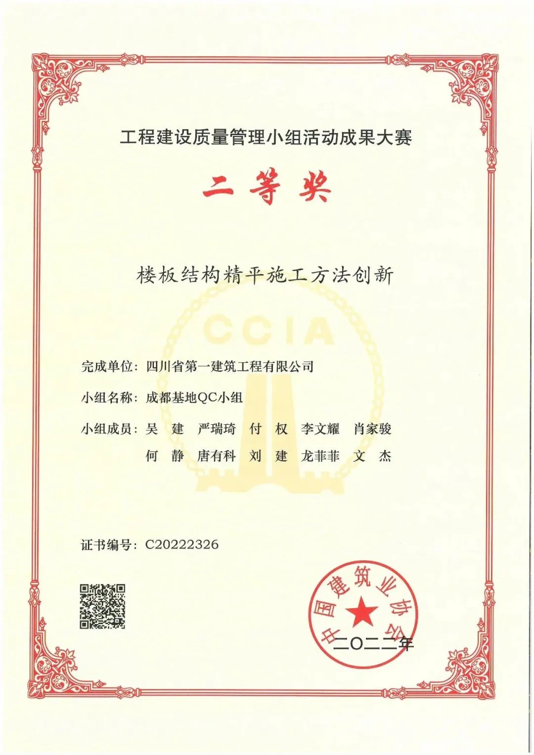 近日,第三工程公司國家(jiā)環境保護機動車(chē)污染控制(zhì)與模拟重點實驗室(成都基地)項目再次傳來(lái)喜訊,“樓闆結構取消找平層精平施工創新方法研究”繼2022年6月榮獲四川省工程建設質量管理(lǐ)小(xiǎo)組活動成果一等獎後,再獲中國建築業協會(huì)2022年工程建設質量管理(lǐ)活動成果大(dà)賽二等獎!