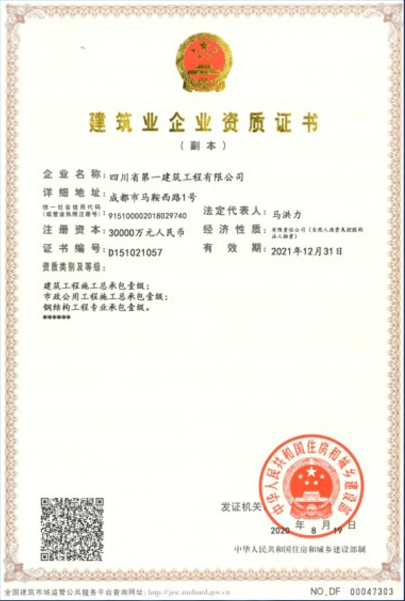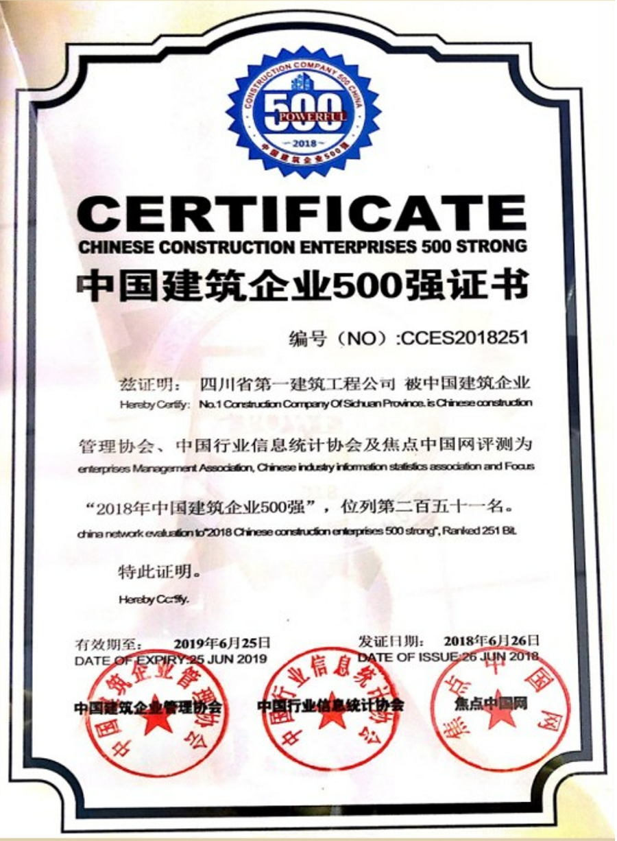 中國建築行(xíng)業500強證書(shū)